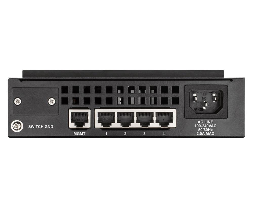 • Combo Ports (RJ-45 + SFP): 4 BASE-T PoE and 1 x BASE-T MGMT Port