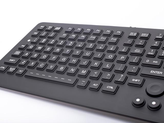 The SLK-880-FSR-OEM from iKey® exceeds NEMA 4X requirements when properly installed and is fully-submersible, meeting IP68 specifications. Unique features of the SLK-880-FSR-OEM include a conductive plastic case, adjustable green backlighting that is also available in a night vision (NVIS) compatible configuration, and an integrated Interlink Electronics Force Sensing Resistor (FSR) pointing device.