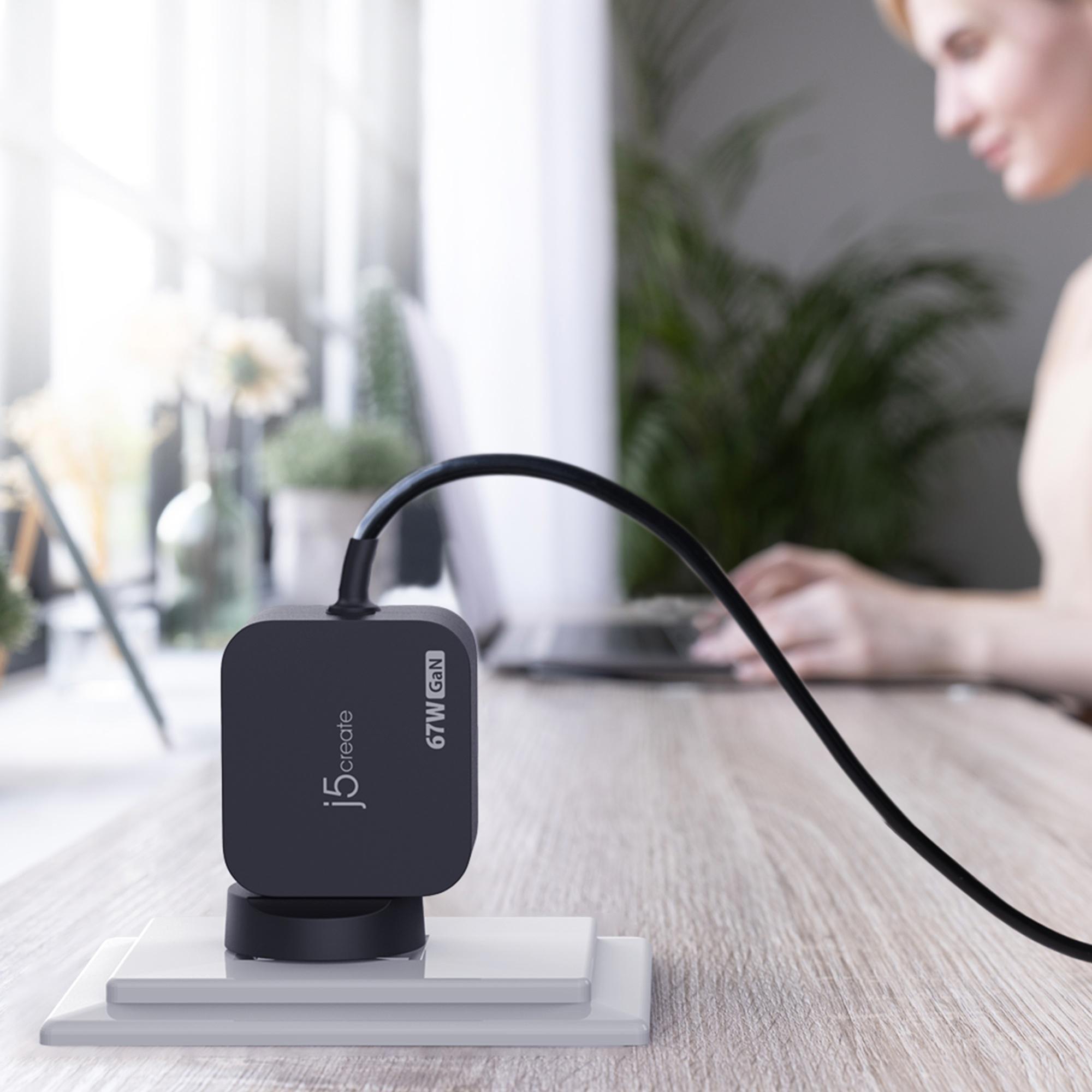 J5Create JUP1565DCU 67W GaN PD USB-C Mini Charger with 6 Types of DC Connector