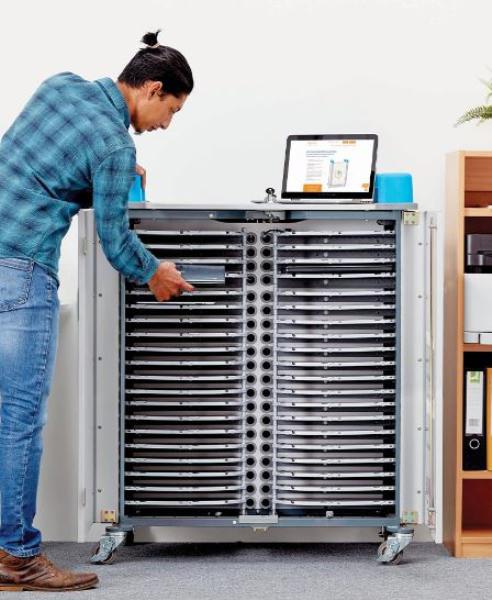 - Charges 40 devices up to 14" screen size - laptops, Chromebooks and tablets