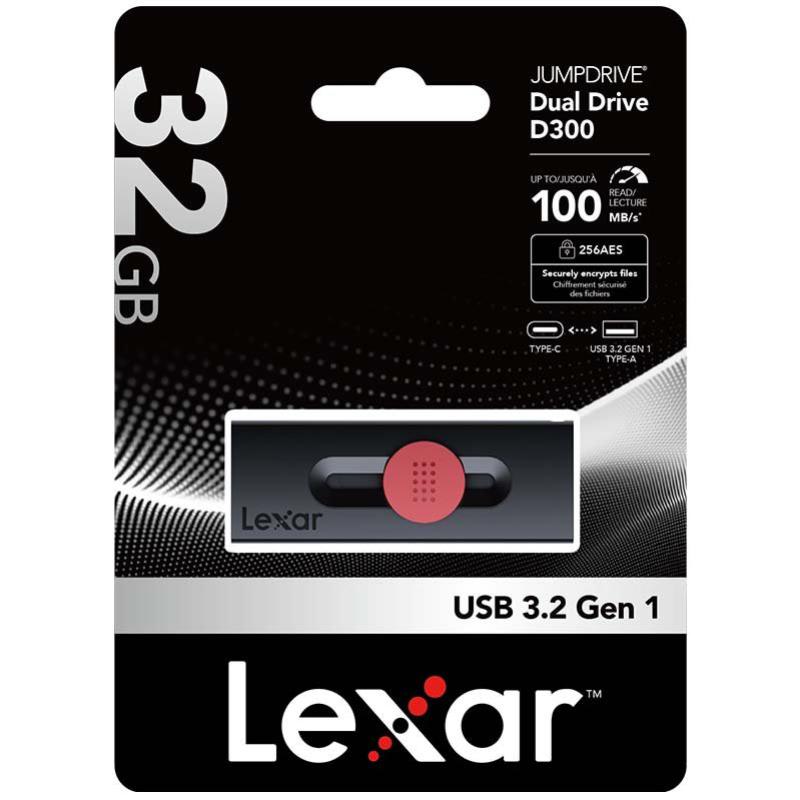 Lexar JumpDrive D300 OTG USB 3.1 USB Type-C and USB Type-A 32GB , 5 year Warranty.