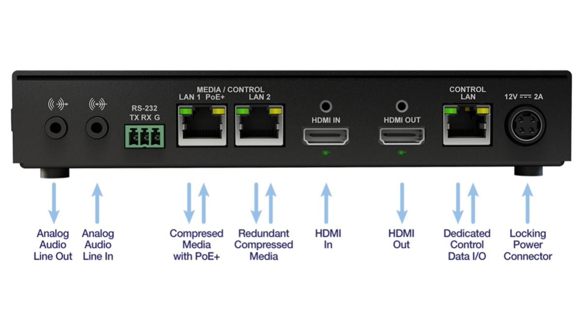 Matrox ConvertIP DRH is a compact, standalone ST 2110 and IPMX encoder/decoder device. Featuring HDMI I/O and three RJ45 ports on a single device, ConvertIP DRH is designed for 1G AV workflows and is optimal for an ultra-low latency experience. The device can receive power over Ethernet through its RJ45 connection, or it can be powered through an optional power supply unit. Both can be used simultaneously to deliver power redundancy.