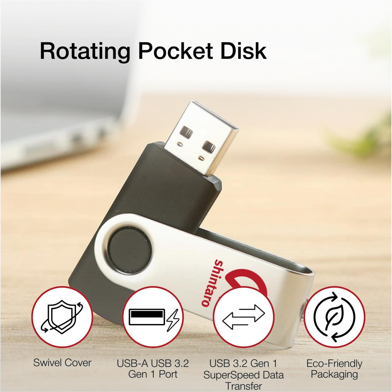 Shintaro 256GB USB 3.2 Rotating Pocket Disk - High-Speed, Portable Data Storage
