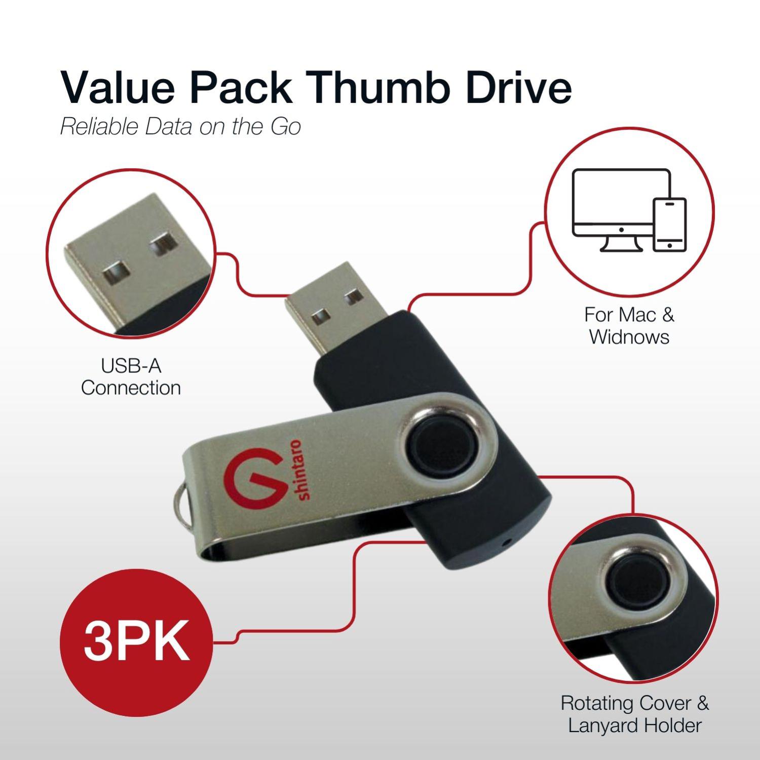 Shintaro 8GB USB2.0 Rotating Pocket Disk - 3 Pack, Lightweight & Compact, Plug & Play