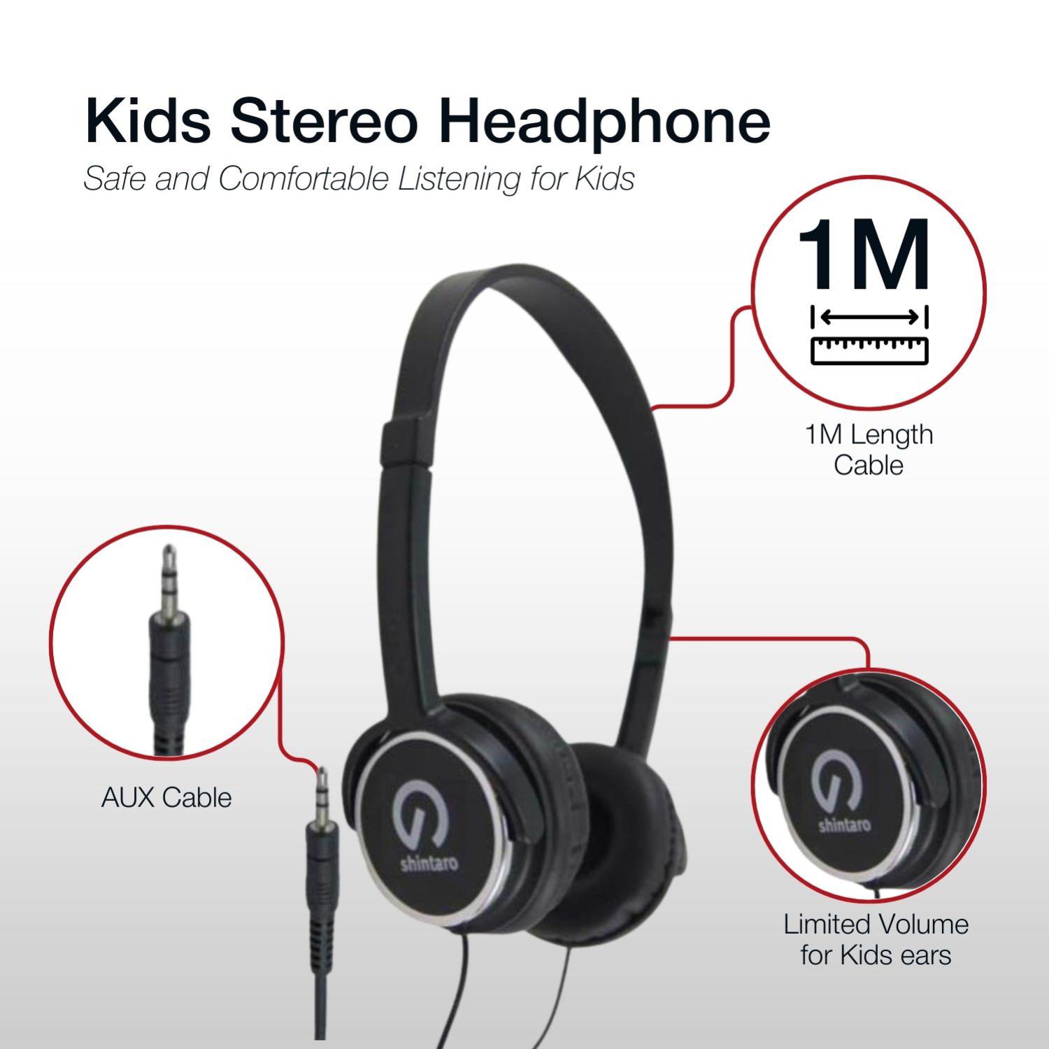 Designed specifically for your child's comfort and listening pleasure, the Shintaro Kids Stereo Headphones feature an 85dB volume limit to ensure safe sound levels. These lightweight headphones come with an adjustable overhead design, providing a perfect fit for growing children. Ideal for use with MP3 players, portable entertainment devices, and mobile phones, they are equipped with a 1-meter cable for flexibility. Enjoy high-quality stereo sound while keeping the volume at a kid-friendly level, making them perfect for learning, playing, or enjoying music safely. With the Shintaro Kids Stereo Headphones, your child can experience comfortable and secure listening anytime, anywhere.