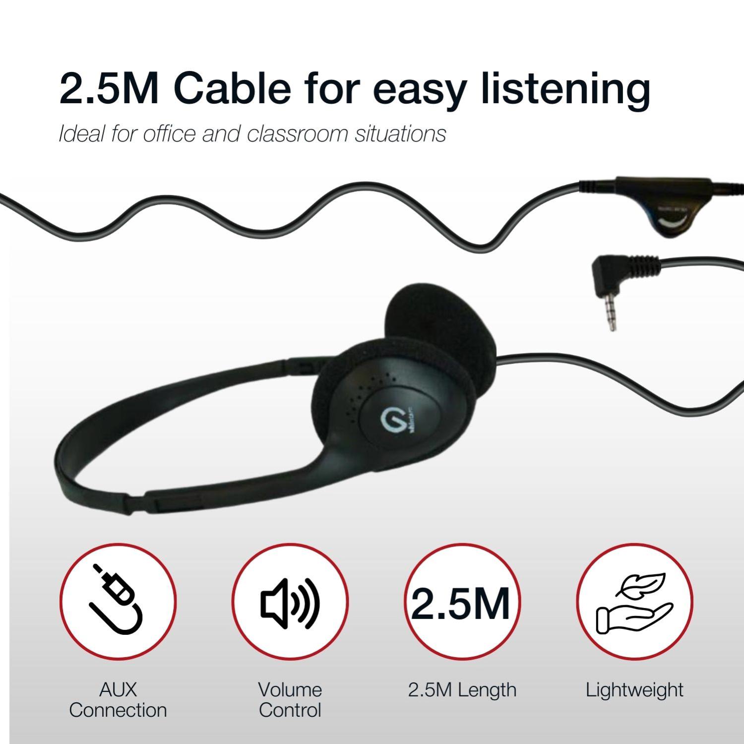 Shintaro Lightweight Headphones with Volume Control and 3.5mm Audio Jack, Flexible Headband, 2.5m Cord, Ideal for Office and Classroom Use