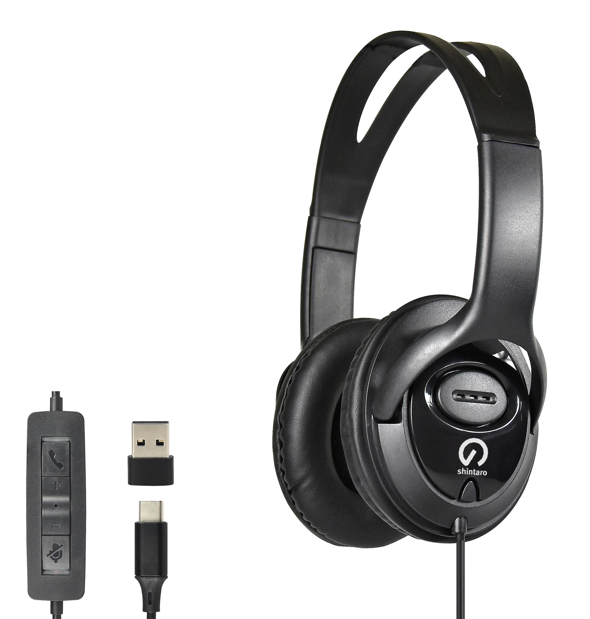 Shintaro USB-C Over-Ear Headset w/ In-Line Mic, Volume Control, USB-C to USB-A Adapter, 40mm Drivers for iPad, Tablets, Chromebooks, Laptops