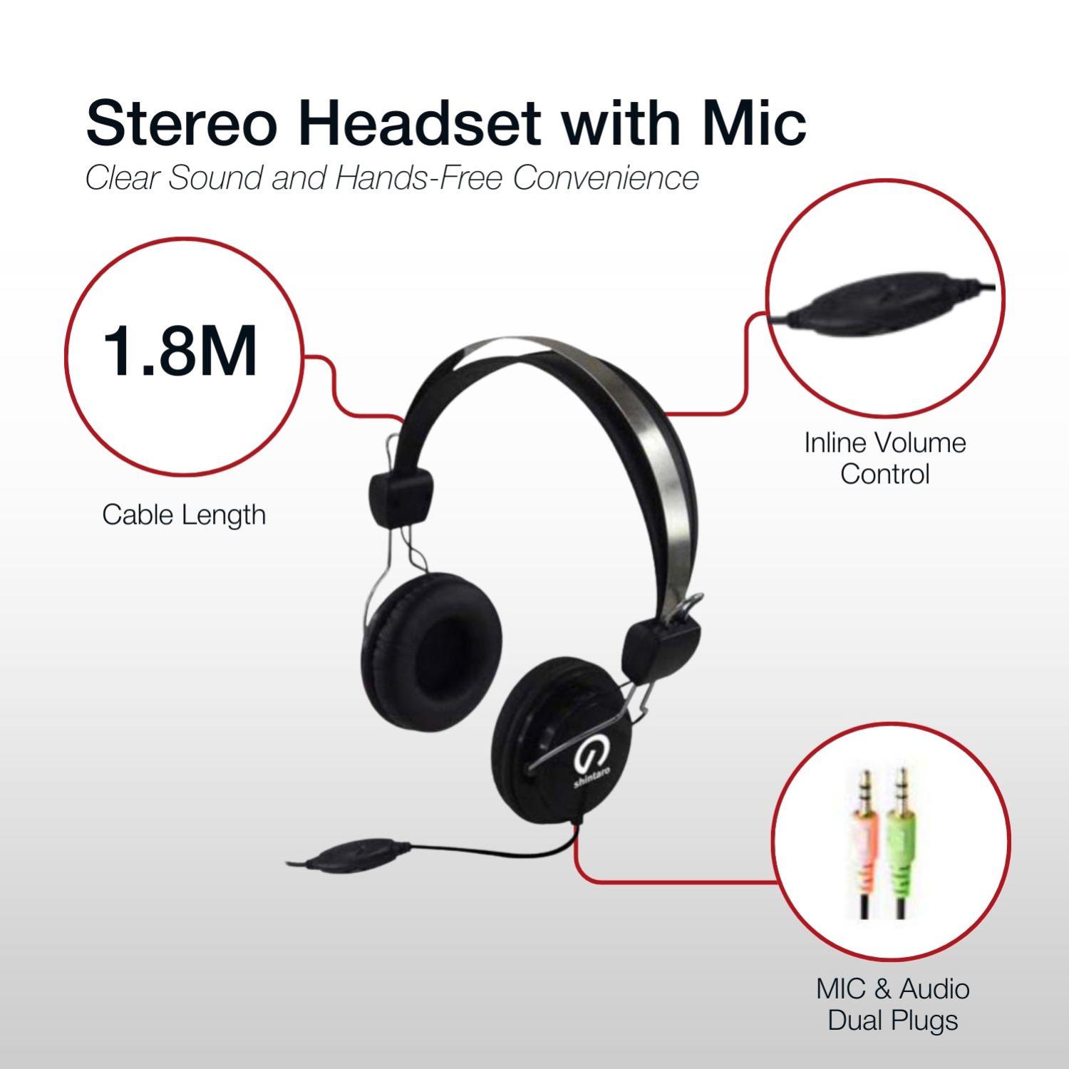 Shintaro Stereo Headset with Inline Microphone and two 3.5mm Audio and Mic Jacks - Adjustable Headband, Inline Volume Control, Suitable for Kids