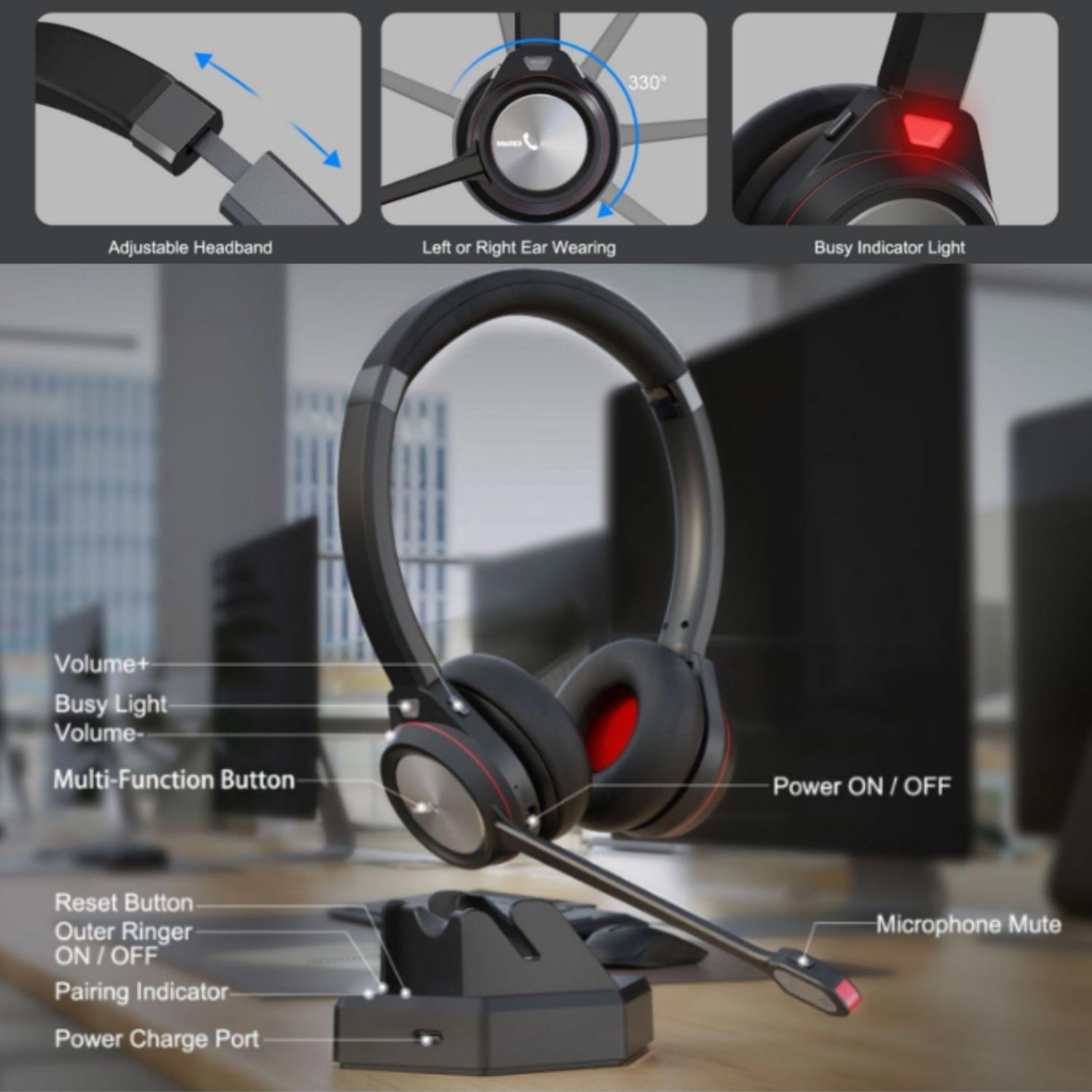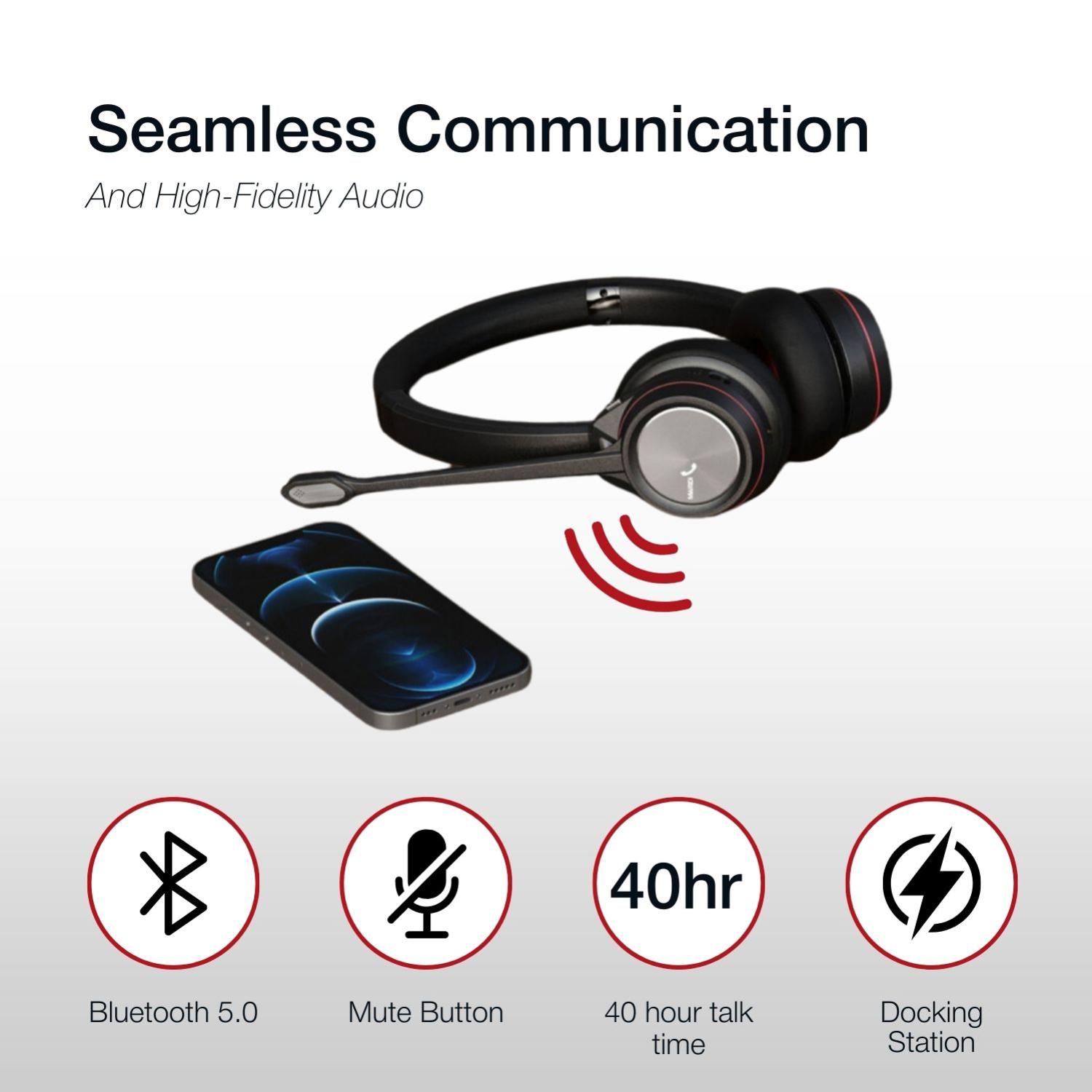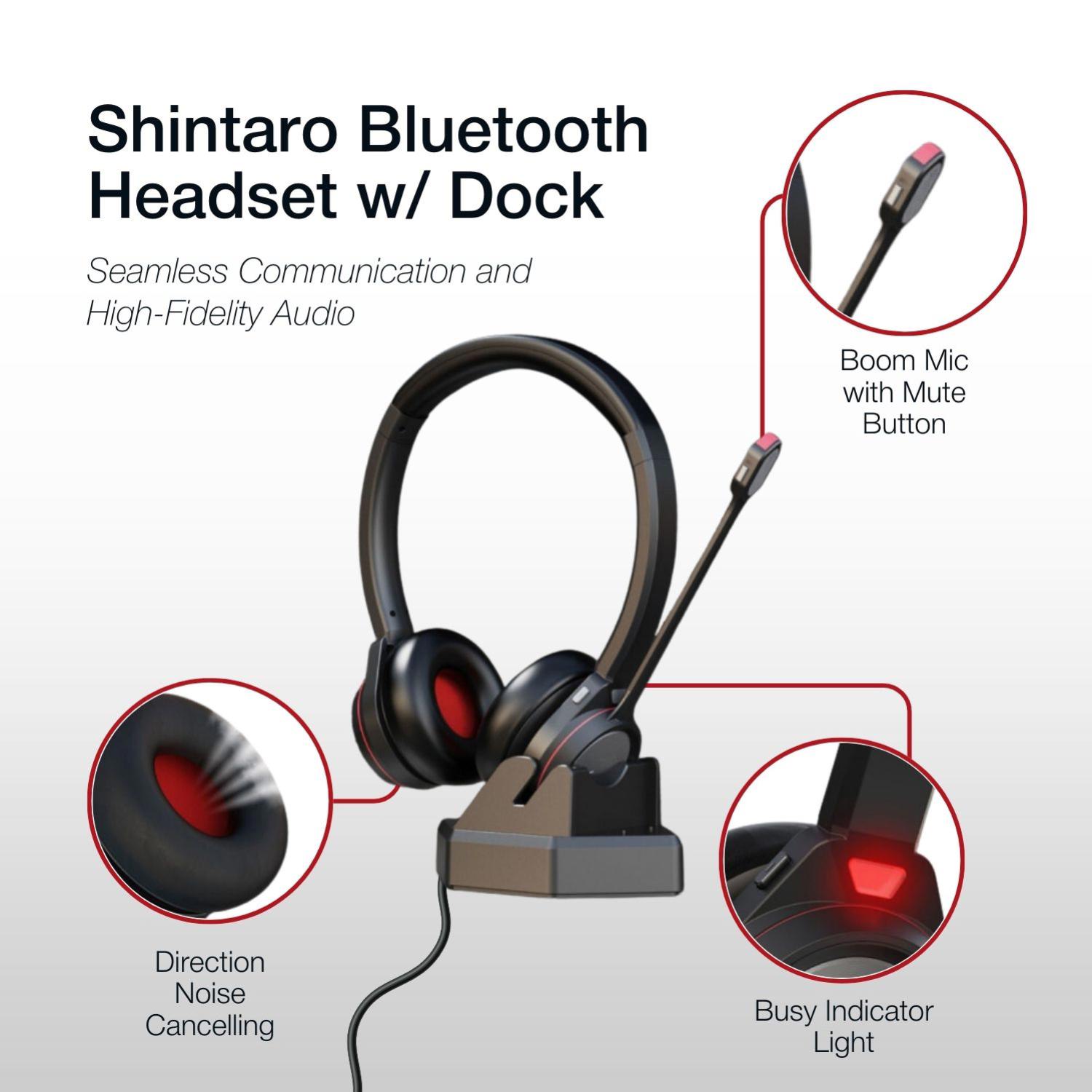 Shintaro Wireless Headset with Mic - Noise Cancelling, Dual Device Connectivity, 30m Range, 40 Hours Talk Time, with Charging Base