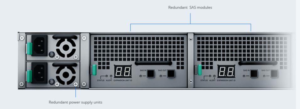 Synology RXD1219sas is a 2U expansion unit, providing an easy storage space upgrade solution for your Synology servers. It can add up to 12 additional 2.5" / 3.5" SAS drive bays on the fly when connected directly with a mini-SAS HD cable. Synology RXD1219sas is backed by Synology's 5-year limited warranty.