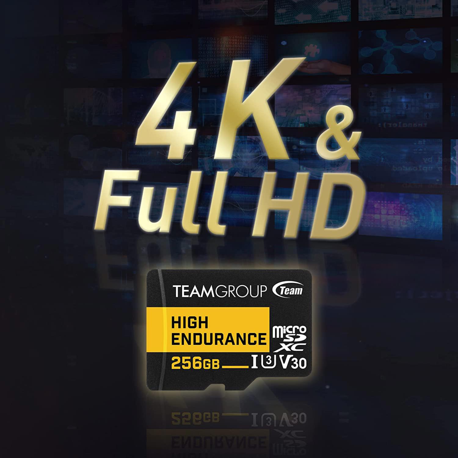 Team Group HIGH ENDURANCE 128GB Micro SDXC UHS-I U3 V30 4K 100MB/s(Designed for Monitoring) Stable Durable Long Lasting Flash Memory Card for Security