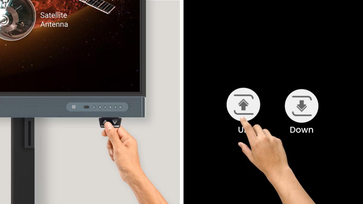 Elevate your displays! Precisely adjust the height and move your with ease to optimise viewing and hands-on interaction in any space. Use the remote or the built-in app to adjust display height down to the inch for enhanced accessibility and viewing angles in a variety of spaces. The anti-collision safety sensor detects when something is in the way and prevent from impacts. Your display goes where you go! You can easily roll your display from room to room and lock it securely in place. The MT02E can hold smart boards and displays up to 120 kg (264 lbs) to fit your organisation’s choice of display solutions.