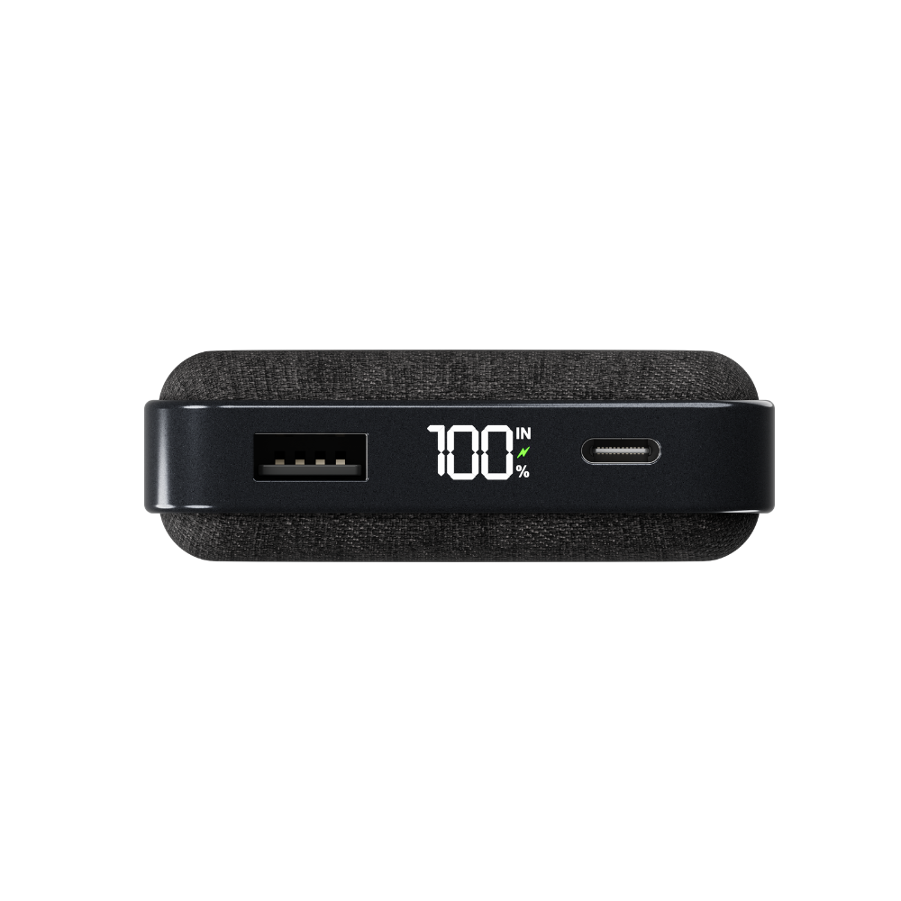 Stay connected with the ChargePro Power Bank 10K, designed to charge your phone faster than ever. With a capacity to provide up to two full phone charges (0-100%)*, it's the perfect companion for your daily needs. Featuring 20W fast charging through dual USB-C ports and an additional USB-A port, you can power multiple devices at once or share with friends. The sleek, contemporary design includes a digital display to track remaining battery life, while the stylish and durable fabric finish adds a modern touch.