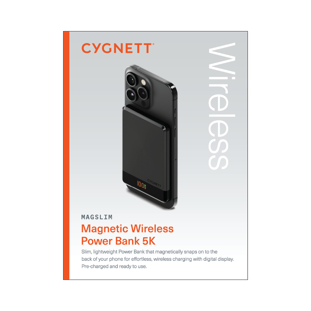 Cygnett MagSlim 5000mAh (5K) Magnetic Wireless Power Bank - Black