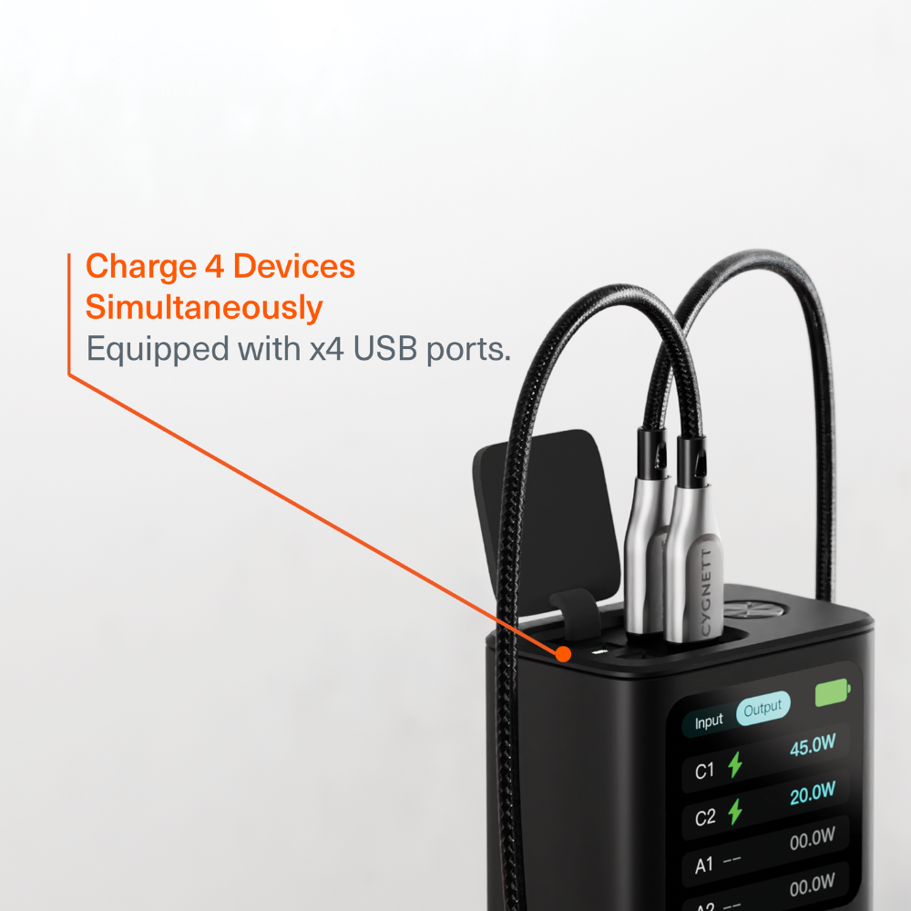 Designed to charge more than just your notebook, this powerhouse features x4 USB ports that can deliver 65W to a single laptop or share across all ports to charge x4 devices simultaneously.