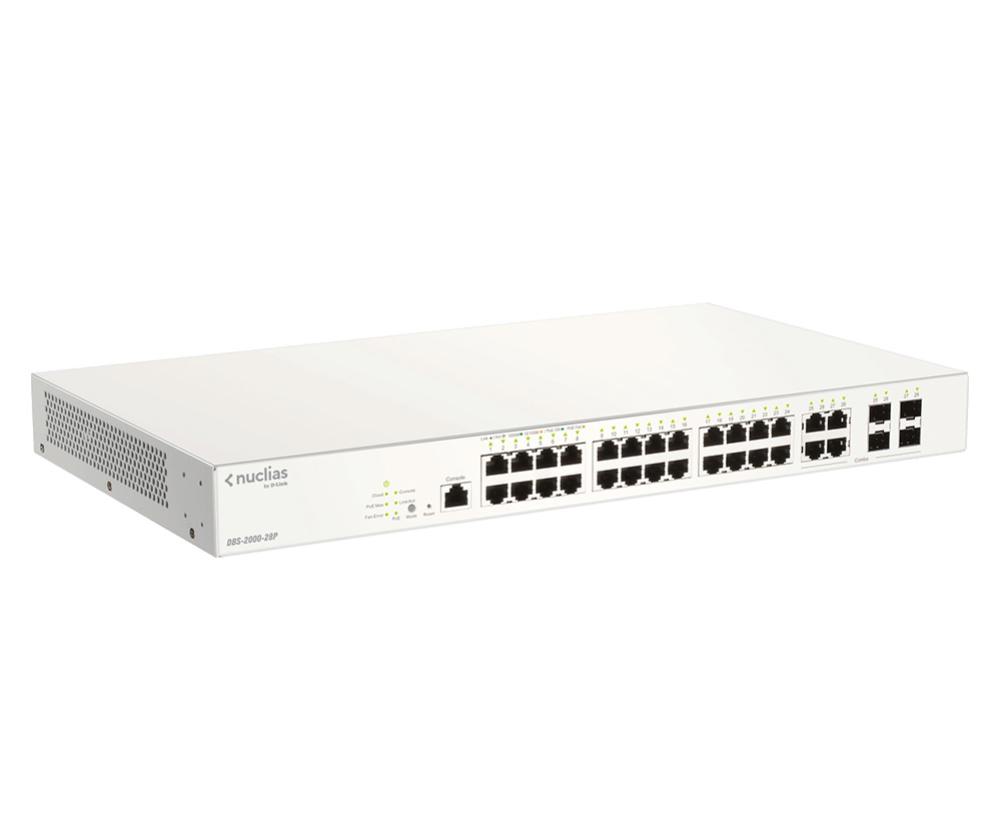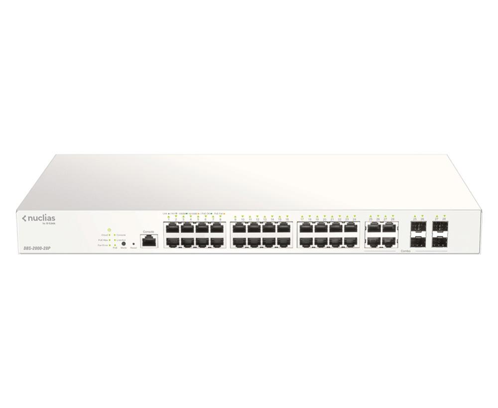 D-Link DBS-2000-28P Nuclias Cloud-Managed 28-Port Gigabit 193W PoE switch with 28 RJ45 (24 PoE) and 4 Combo SFP ports