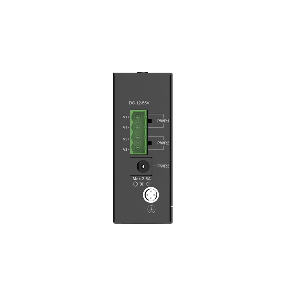 The DIS-100E-05 is equipped with dual power supply options. Each is capable of independently powering the device. This built-in redundancy ensures continuous operation even if one power source fails, minimising shutdown risk and maintaining network performance. As industrial environments are common with unstable power conditions, its wide voltage range of 12 / 55V DC supports diverse power sources while protecting against surges and low voltage, delivering a stable and dependable power supply.