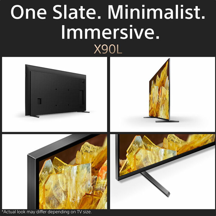 Our amazing 4K Full Array LED TV powered by Cognitive Processor XR delivers realistic depth and intense contrast. A newly designed local dimming structure brings scenes vividly to life. What you hear matches what you see. Sony-developed SORPLAS recycled plastics are used in our TVs to minimize virgin plastics by approximately 60%, maintain durability and achieve the beautiful high gloss black finish synonymous with BRAVIA. What's more, our new packaging uses around 48% less plastic volume. The Cognitive Processor XR delivers a picture with wide dynamic contrast and natural colours, replicating how we see the real world. Deep black, high peak brightness, and billions of accurate colors with Full Array LED and XR Triluminos Pro. Get access to all your favorite streaming apps in one place with Google TV, and simply use your voice to search and ask questions with Google Assistant. Supports Apple Airplay. Get high-quality 4K UHD movies on us with the BRAVIA CORE app. Game Menu puts all your gaming picture settings and exclusive assist features in one place. Get the advantage in high-performance gaming with HDMI 2.1 features like 4K/120, VRR, and ALLM. Take your PlayStation 5 gaming to the next level with exclusive features that optimize picture quality for gaming and streaming. Enjoy engaging cinematic content the way the creators intended with support for Dolby Vision, IMAX Enhanced, Netflix Adaptive Calibrated Mode, and more. With Acoustic Multi-Audio and support for Dolby Atmos, sound positioning tweeters produce wider, elevated sound that matches the picture you see. Acoustic Center Sync synchronizes the TV speakers with select Sony soundbars, reinforcing the center speaker channel for clearer, fuller dialogue and more immersive sound. Bring back lost detail, with reduced noise, and see all your HD and digital content upscaled to near-4K resolution with XR Clear Image and XR 4K Upscaling. See blur-free picture quality in fast-moving sports and action-packed movies powered by XR Motion Clarity. Multi-position stand with two variations of flexibility standard low-profile setting for immersive viewing or raised to accommodate a soundbar.