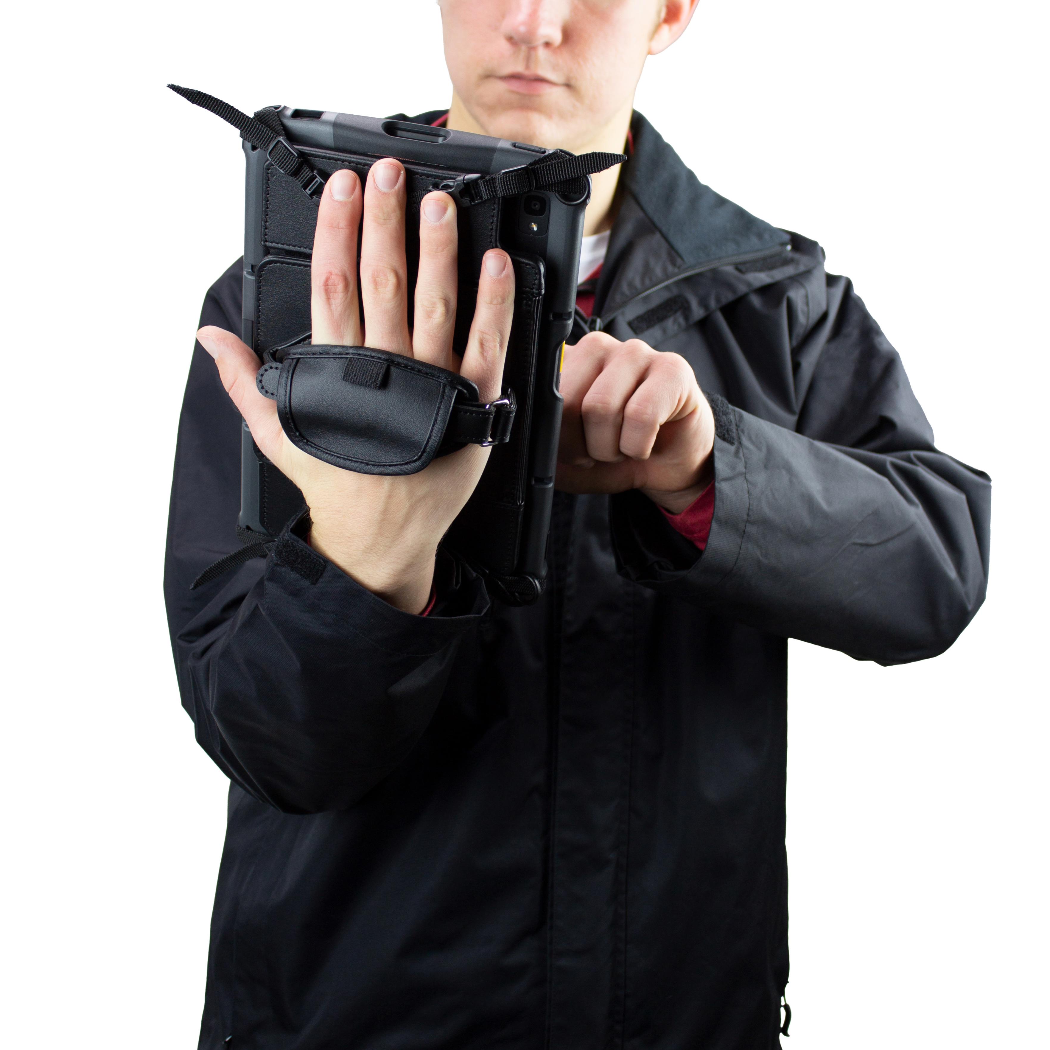 The ModuFlex Pro for Zebra ET 40/45 10" enhances efficiency with its ergonomic design, featuring a rotating hand strap to reduce hand, wrist, and arm fatigue. It includes an easel for a versatile workstation, boosting productivity in various tasks. The ModuFlex Pro for Zebra ET 40/45 10" seamlessly attaches to the InfoCase Open Back Rugged Case or the Zebra Rugged Boot, ensuring reliable and convenient use in demanding environments.
