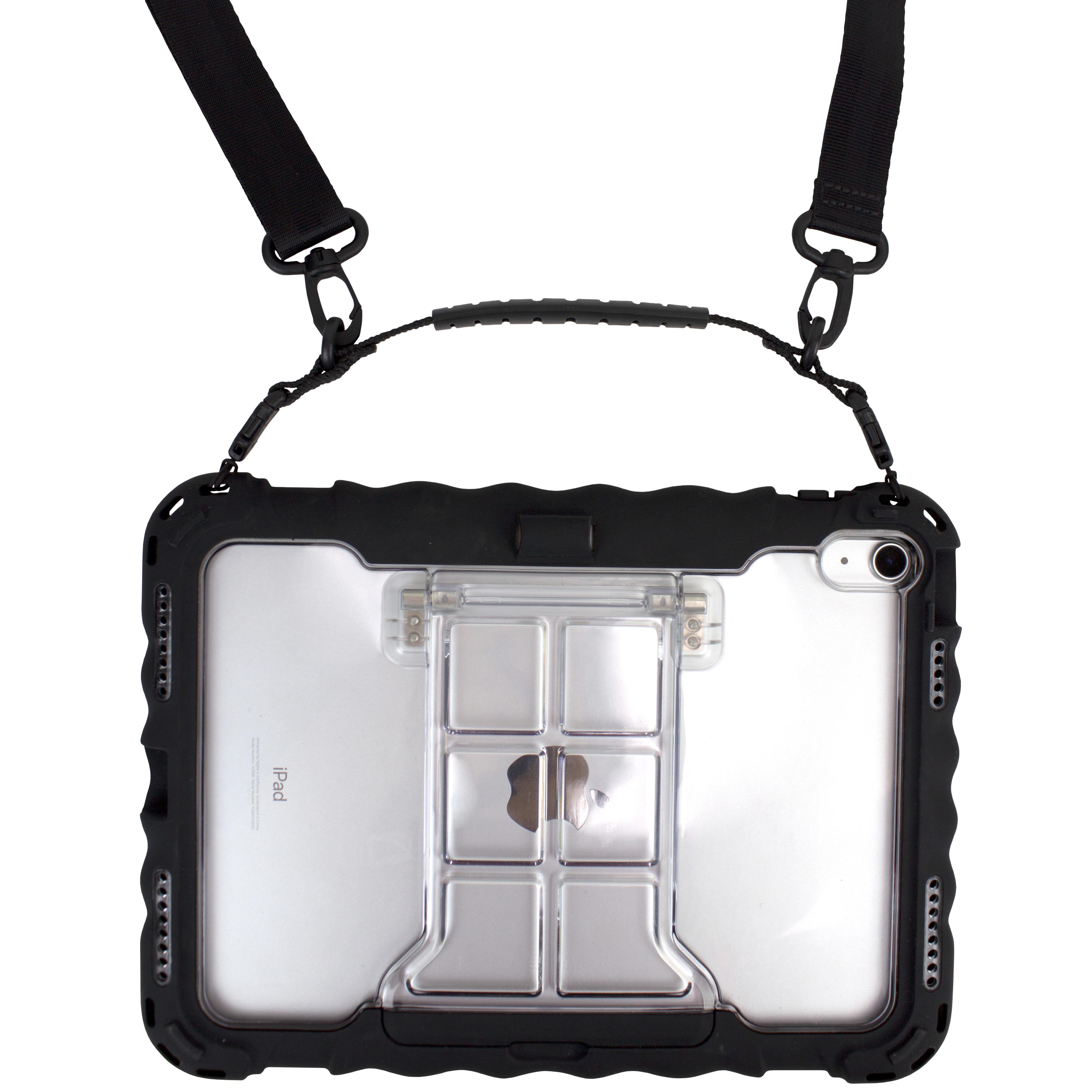 The InfoCase Mobility Bundle is designed for enhanced mobility and hands-free use with your iPad. It comes complete with a removable handle and ergonomic shoulder strap. It allows easy access to all features, ports, and cameras. Must be used with Rugged Snap-On Case for iPad Generations 7, 8, 9, or 10. Also fully compatible with our Elastic X Strap for improved device ergonomics.