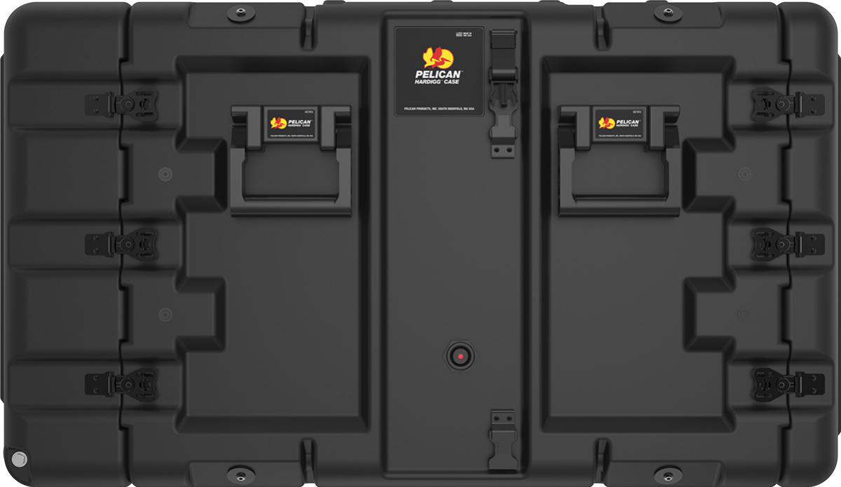 This 9 RU Pelican Super V case supports 19" racks for transportation and storage. Featuring a RotoMolded Polyethylene body, butterfly latches, and folding handles stay out of the way, and integrated wheels allow you to easily roll to your next location. An integrated pressure release valve makes this case suitable for travel by air.