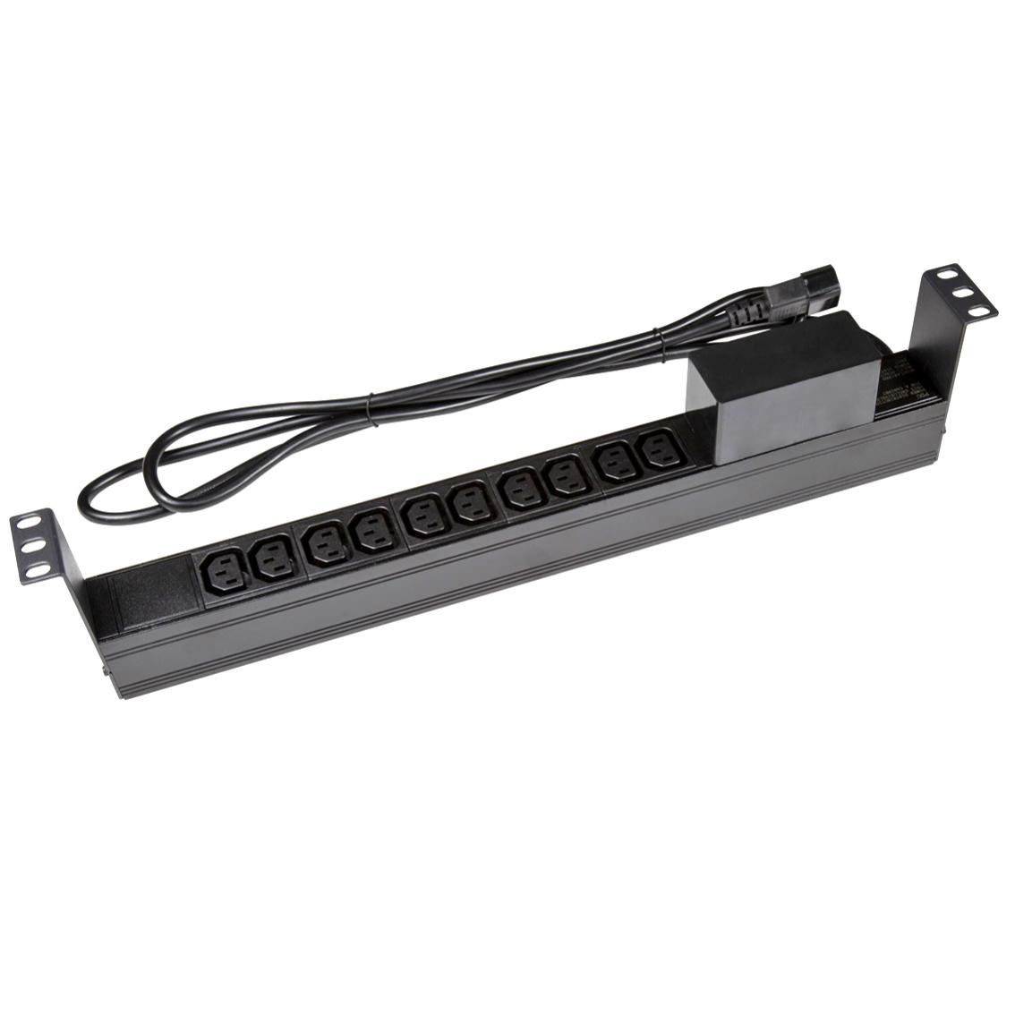 Unmanaged 10 way horizontal IEC power distribution unit with 6KA C-Curve circuit breaker. 10 Amp IEC connector to provide a compact power distribution solution ideal for connecting directly into UPS’s to expand power port availability.
