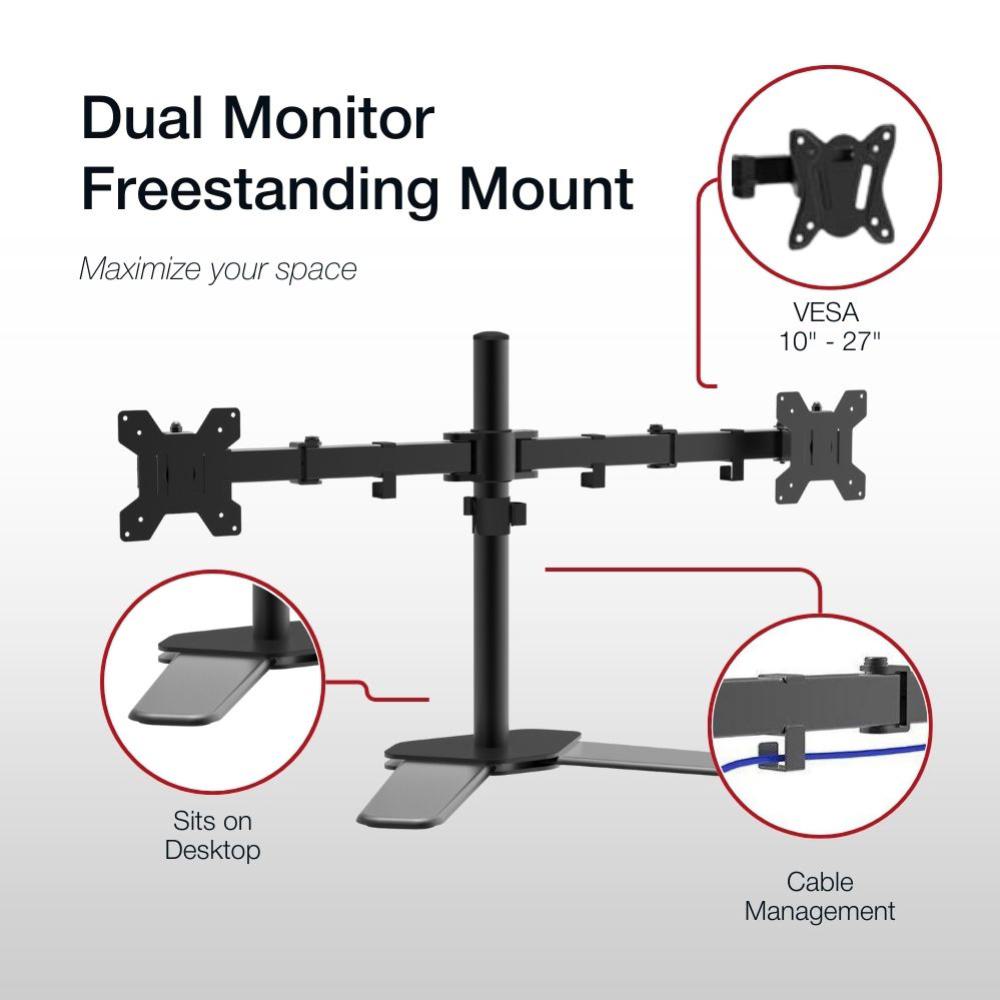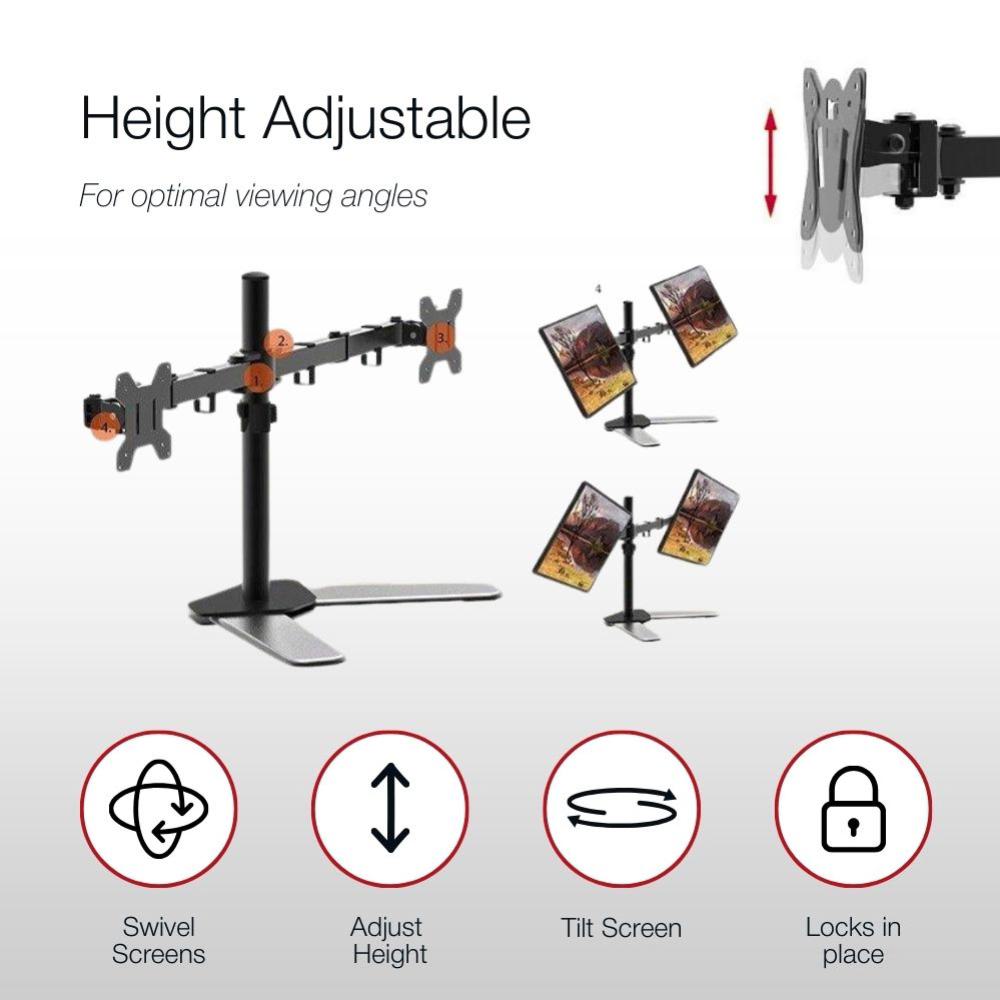 Shintaro Dual Monitor Mount for 10''-27'' Screen, Articulated Arms, Freestanding, 360 Rotation, 180 Swivel, 90 Tilt, 9kgs Max Load Weight