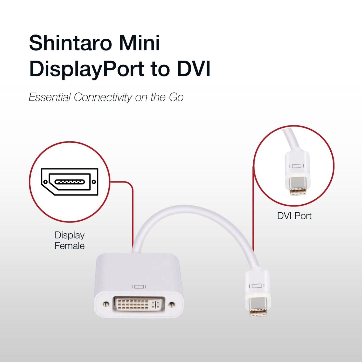Shintaro Mini DisplayPort (MDP) to DVI Adapter - Connect Mac or Notebook to Monitor, HD TV, or Projector, 4K Resolution Support, 22cm Length