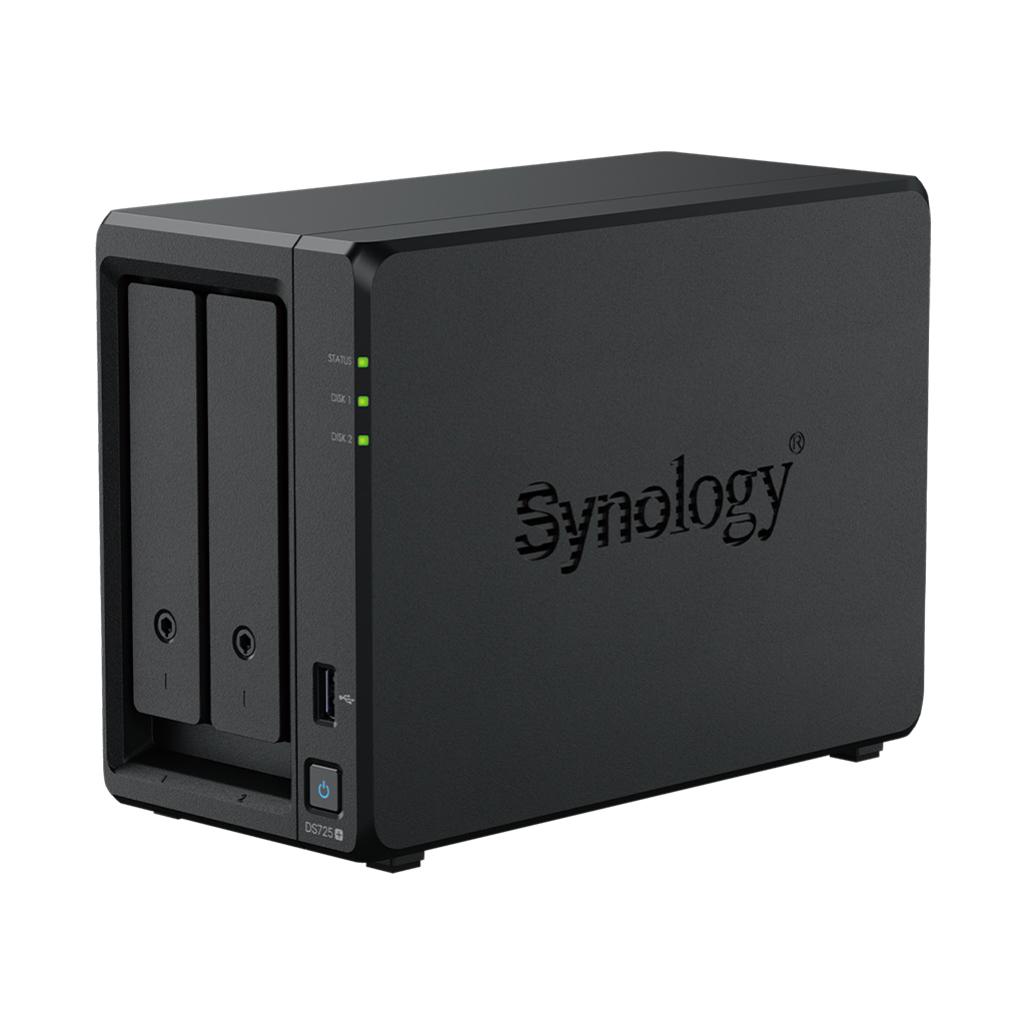 The Synology DS725+ is a capable 2-bay NAS solution that can adapt to growing storage demands. It optionally supports up to seven drives and features two M.2 slots for SSD caching2. Powered by