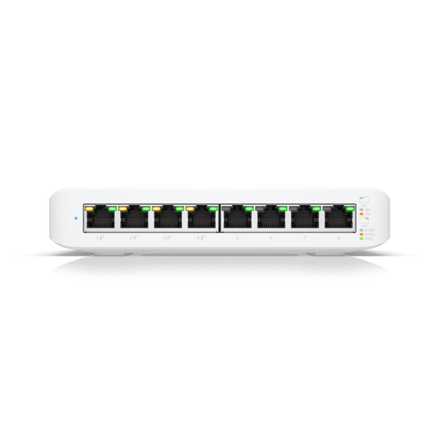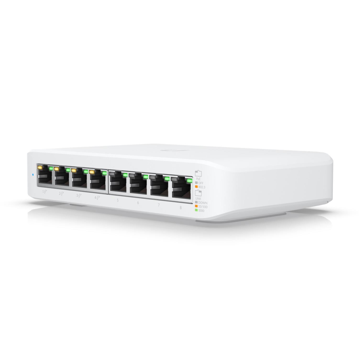 The Switch Lite 8 PoE (USW Lite 8 PoE) is a fully managed switch with (8) GbE RJ45 ports, including (4) PoE+ ports, and a 52W total PoE supply for your UniFi access points and other PoE devices. The USW Lite 8 PoE also offers an extensive suite of Layer 2 switching protocols, and can be monitored or configured from anywhere with the powerful, intuitive UniFi Network web application and mobile app.