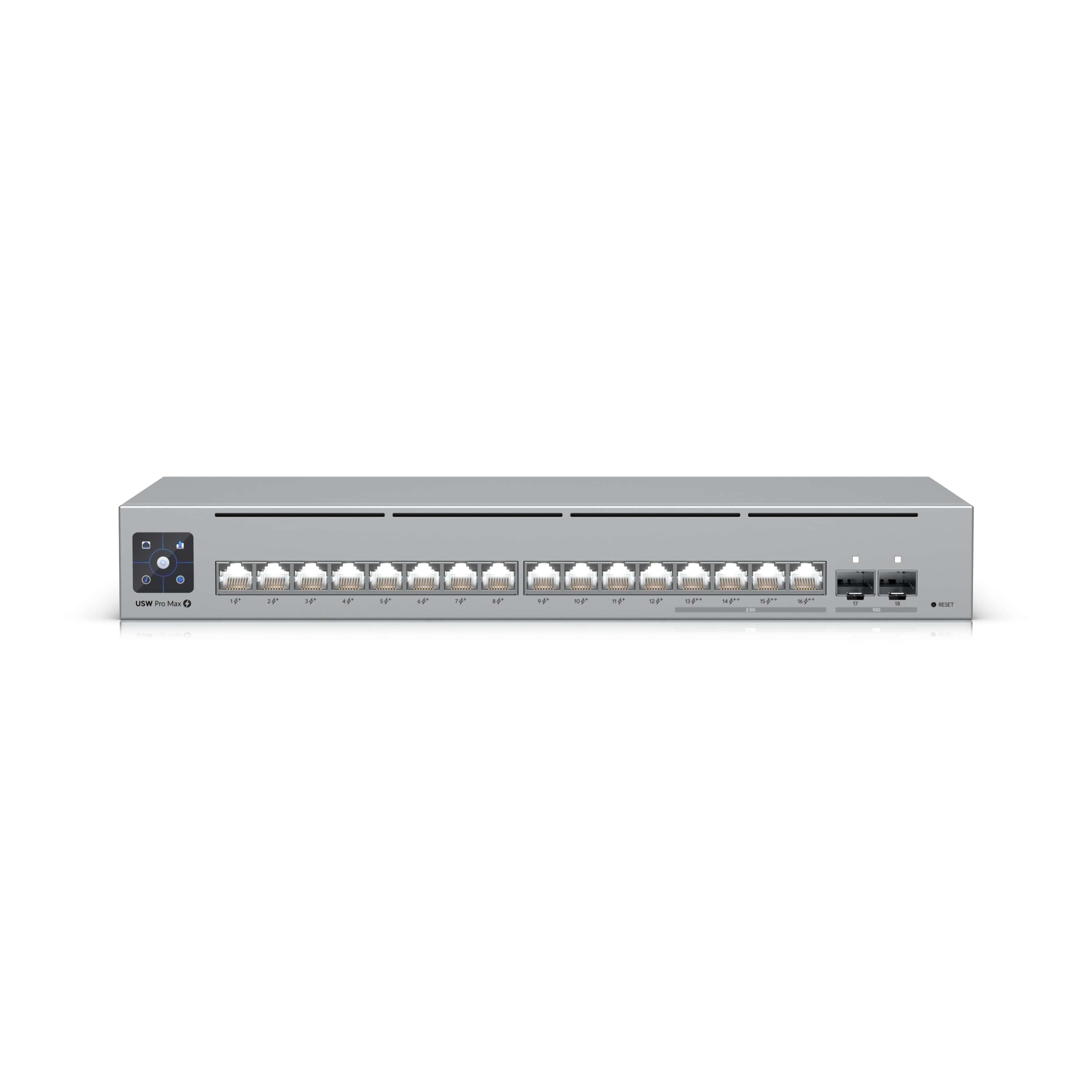 Ubiquiti USW-PRO-MAX-16-POE UniFi Pro Max PoE 16-Port Switch, Layer 3, 12x Gbe PoE+ Ports, 4x 2.5Gbe PoE++ Ports & 2x 10Gb SFP+ Ports, 180w Budget