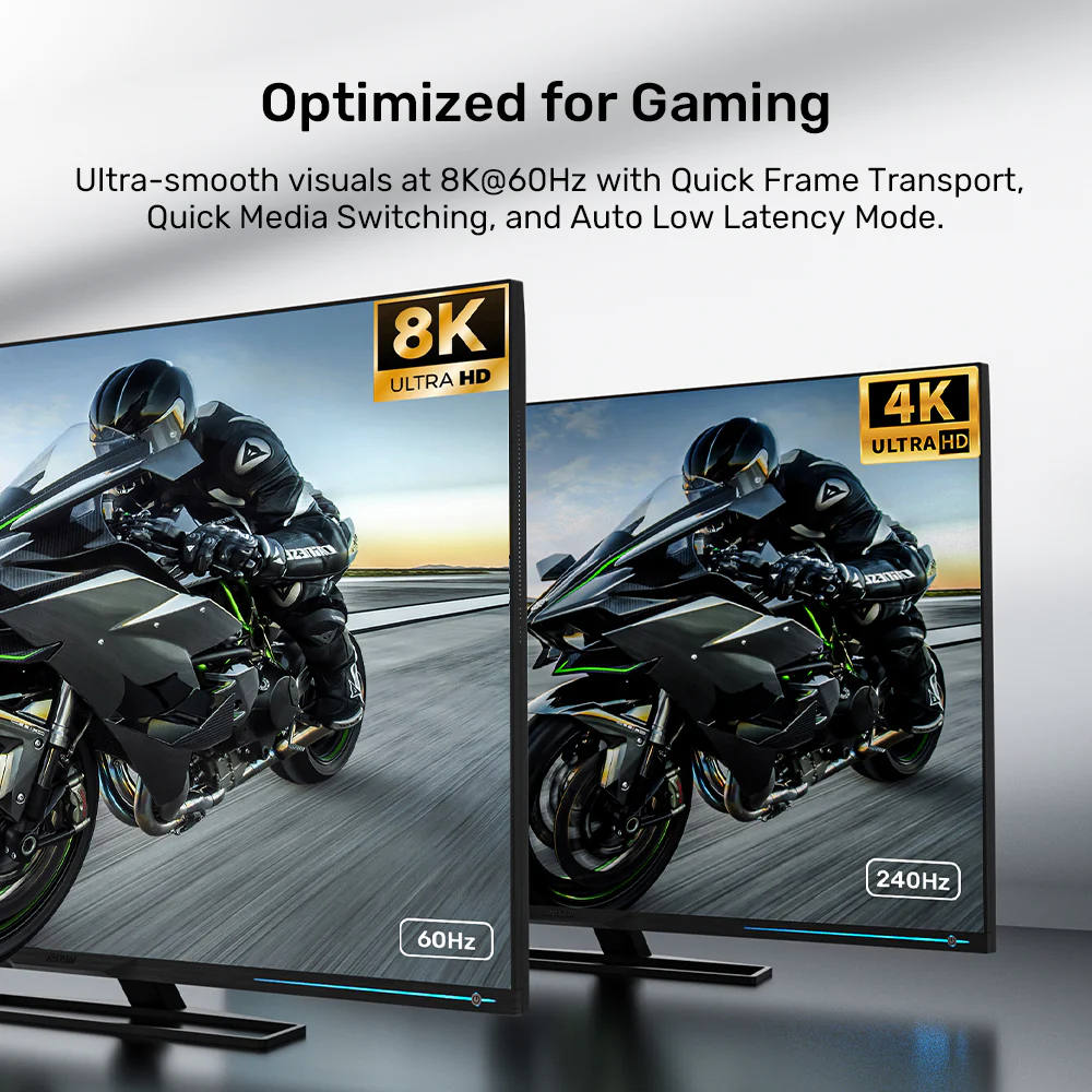 - Optimised for Gaming: Designed for gaming enthusiasts, Unitek Braided 8K HDMI cable delivers ultra-smooth visuals at 8K @60Hz with QuickFrame Transport, Quick Media Switching and Auto LowLatency Mode.