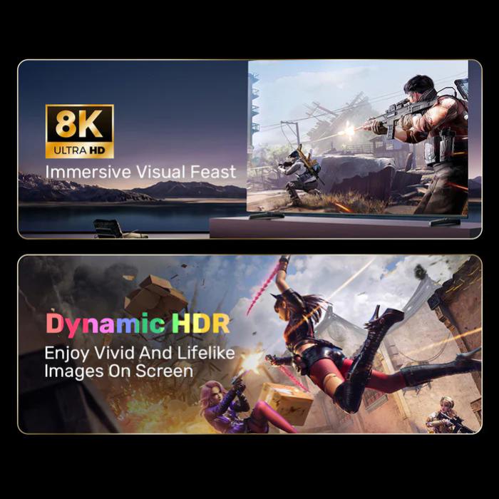 • Enhanced Gaming Experience: Supports up to 32.4Gbps bandwidth, which ensures the comprehensive signals can be transferred without latency.