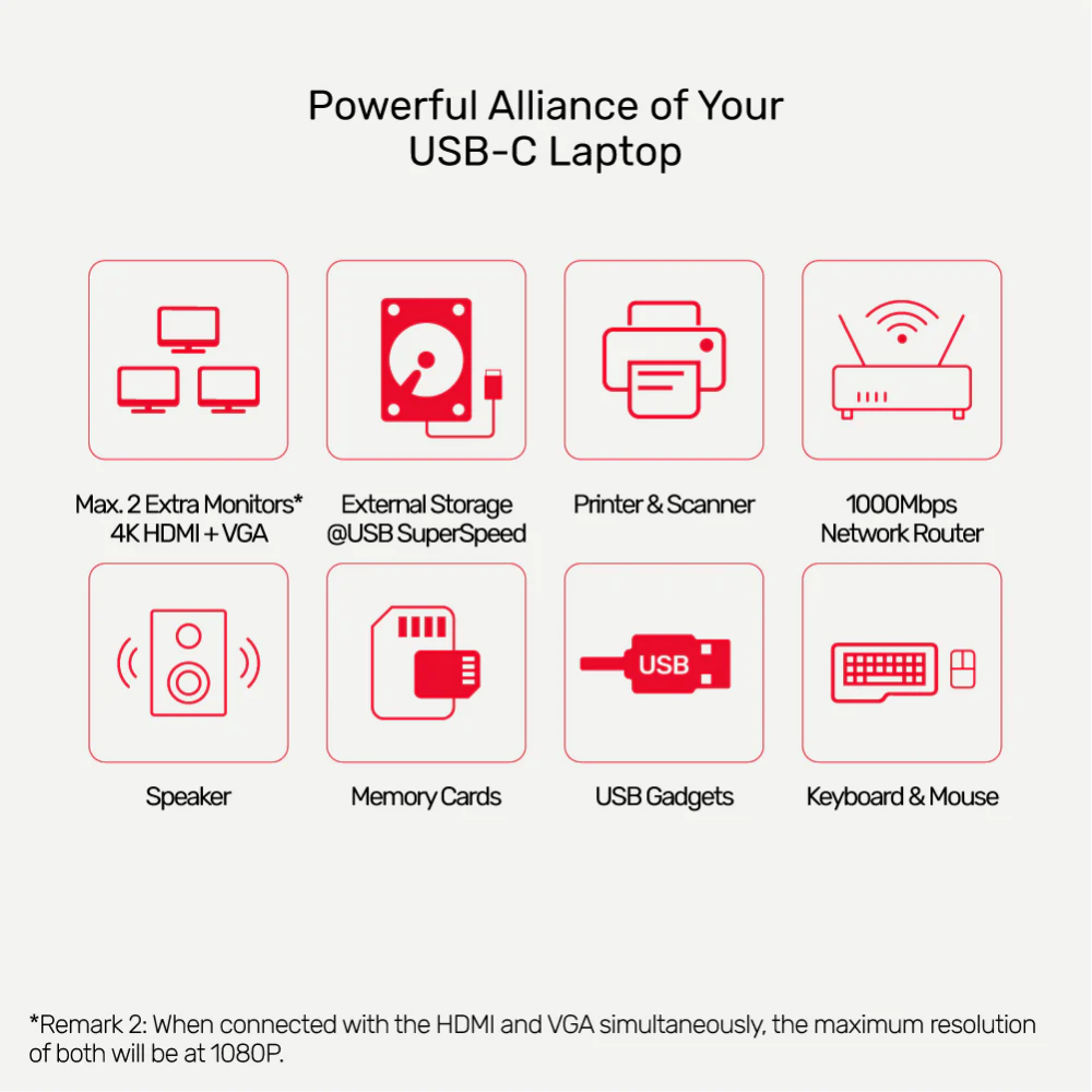 - With the USB-C Power Delivery port, supporting max. 100W/20V5A charging to your upstream computer.