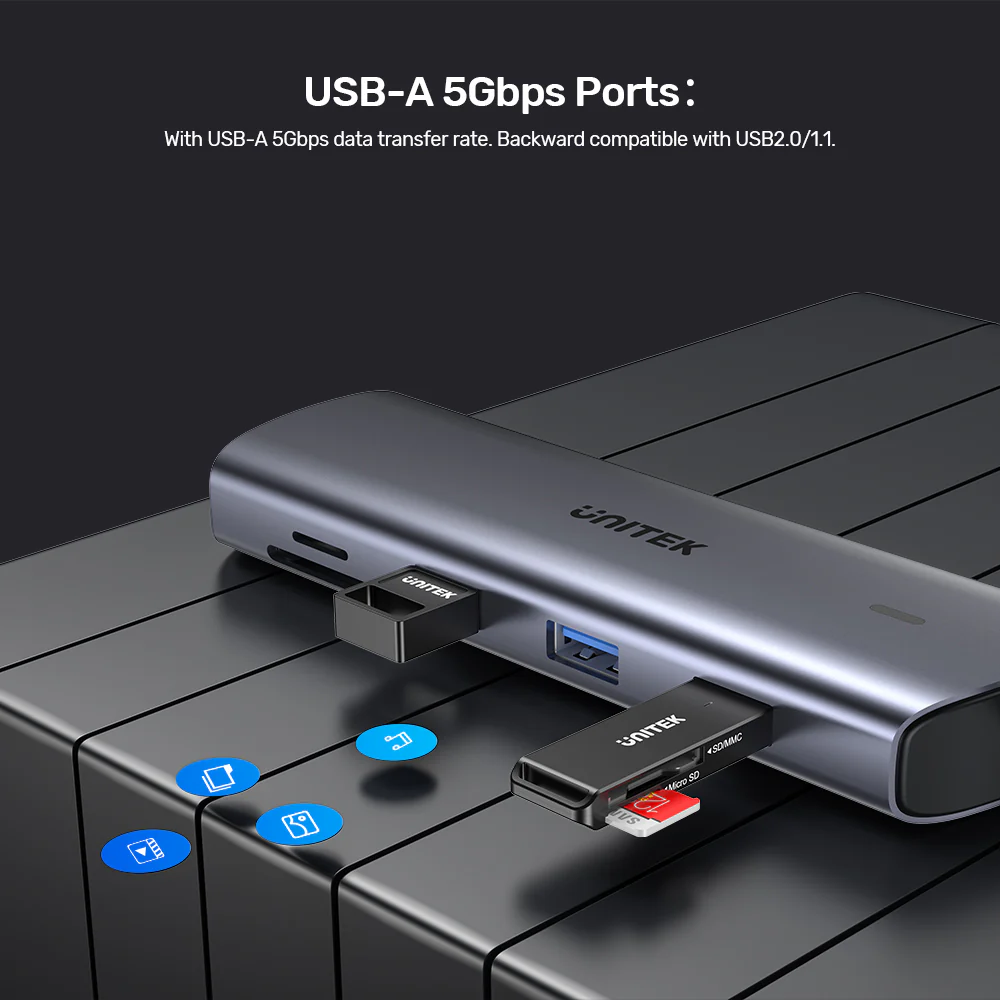Unitek 9-in-1 USB-C 4K Hub with Dual Display, Dual Card Reader, USB-C PD 100W, Grey