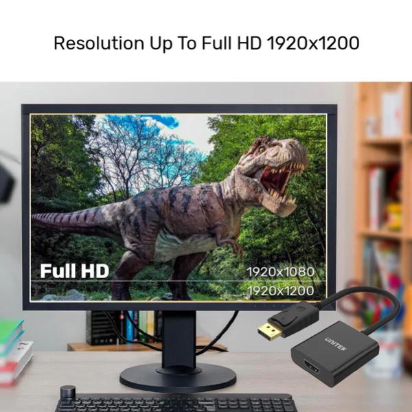 Supporting resolutions up to 1920x1200 for Full HD viewing. Compact and plug-and-play, it requires no software installation, making it perfect for connecting monitors, projectors, and HDTVs.