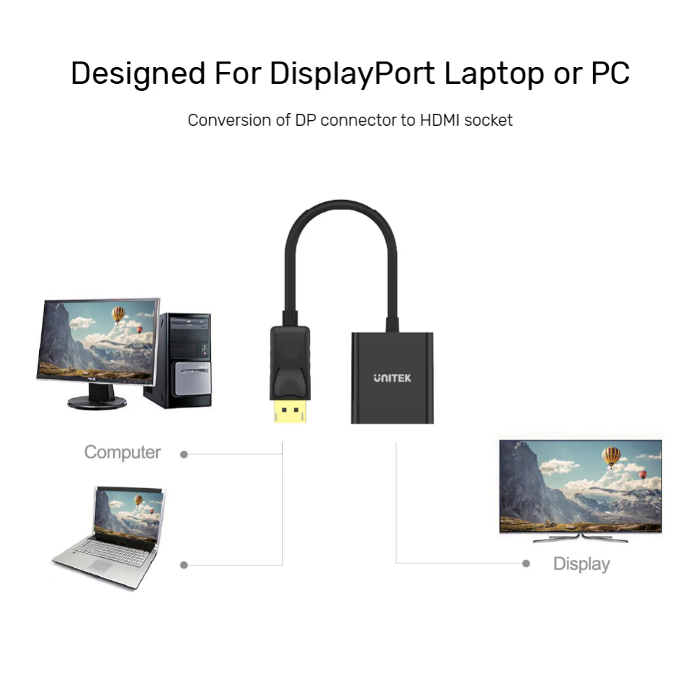 Unitek DisplayPort to HDMI 1080P Full HD Adapter, Black