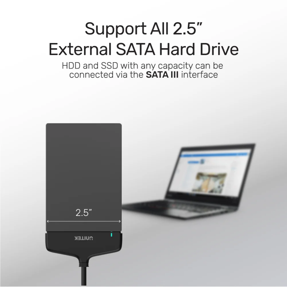 • Compatibility: Converts USB to SATA; supports SATA I/II/III HDDs/SSDs.