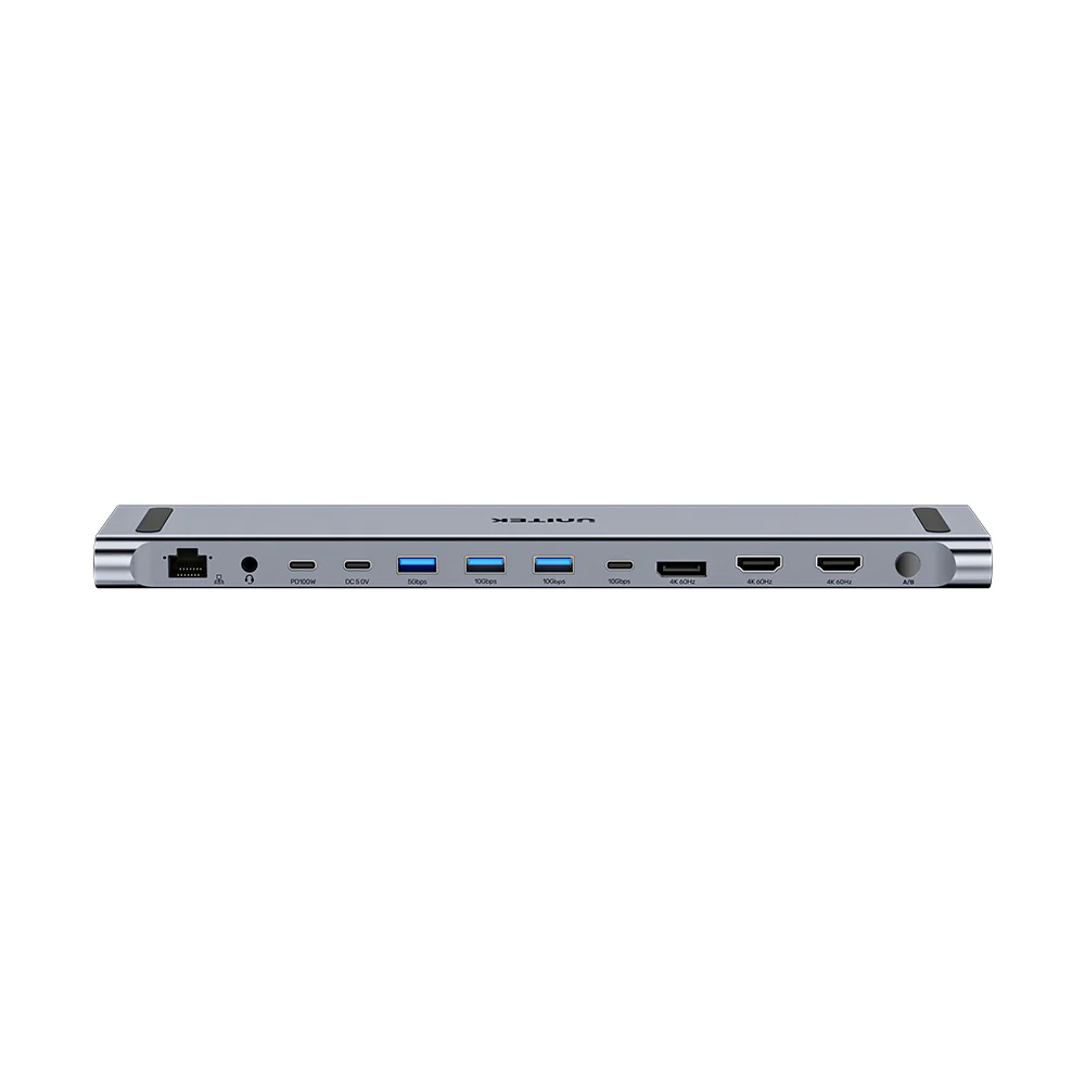 Unitek uHUB15+ USB-C Triple 4K KVM Docking Station, 2x 5Gbps, 1x 10Gbps, 3x 10Gbps, 1x PD 100W, 1x DC5V, Grey