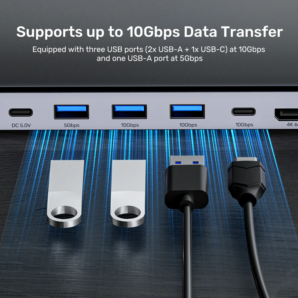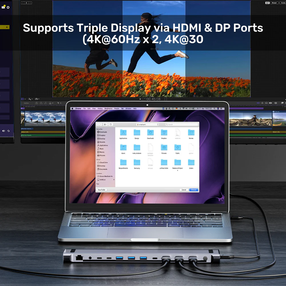 Connect two USB-C laptops to three 4K monitors (2x HDMI, 1x DP) and enjoy seamless switching. With 100W power delivery and multiple ports, it enhances connectivity and productivity.