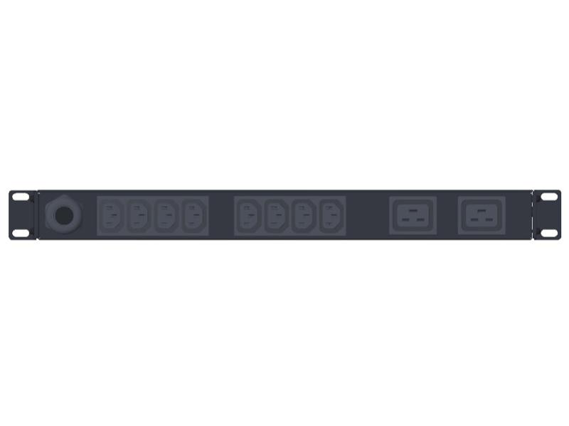 Vertiv Geist F0126849 Basic PDU, 16A, 230V, 3.6kW, 1RU Horizontal, 8x IEC C13 and 2x IEC C19, 3m power cord C20, Black Powder Coat